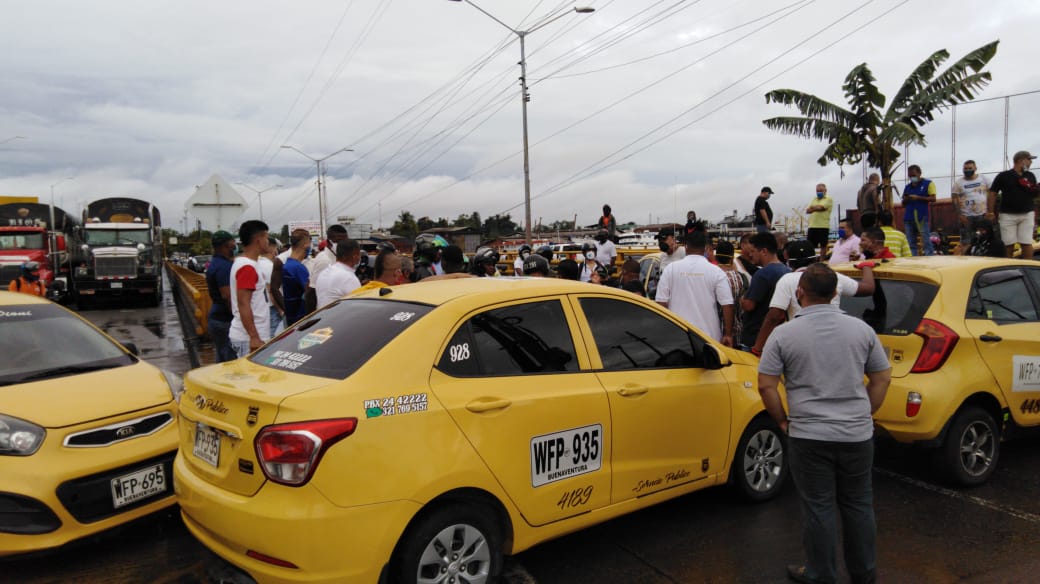 El gremio de taxistas en Buenaventura decidió tomarse las vías de hecho bloqueando la carretera principal de este distrito y a su vez nacional en aras de llamar la atención de las autoridades, los taxistas piden que se revise la norma y que se ajuste a la disposición anterior, la cual consistía en la posibilidad de transportar a (2) dos pasajeros.