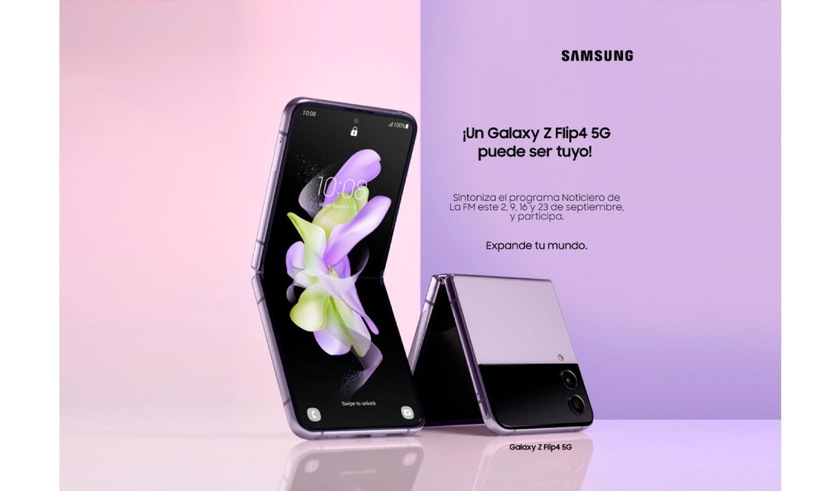 Los días viernes (2, 9,16 Y 23 de septiembre de 2022) se realizará la actividad, donde la audiencia del Noticiero de La FM, a través de llamadas al aire; al abrir las líneas telefónicas llamará y participará con el tema del día y el numeral # Expandetumundo esto en el horarios de 5am a 9 am y quedaría como finalista. Ese mismo día en la última hora del Noticiero de la FM enter 9 a 10 am, los finalistas nos deben llamar y contestar una (1) pregunta del programa y una(1) pregunta de producto y podrá ser el ganador del premio (celular Galaxy Z Flip4).