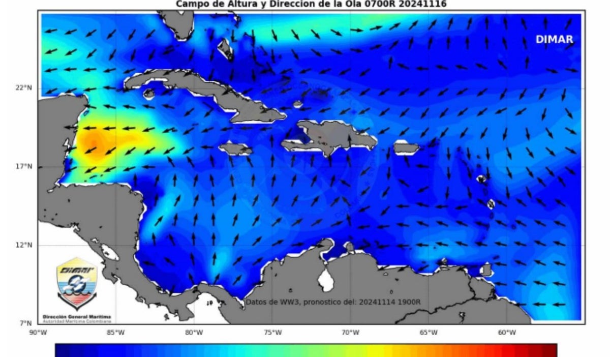 "El ciclón, localizado al norte de Honduras, ha reducido su influencia sobre los vientos y el oleaje en el Caribe colombiano", señaló la entidad en su más reciente comunicado. Actualmente, los vientos predominan del suroeste, con velocidades de 18 a 37 km/h, y el oleaje oscila entre 0.5 y 1.7 metros, según el monitoreo meteorológico.