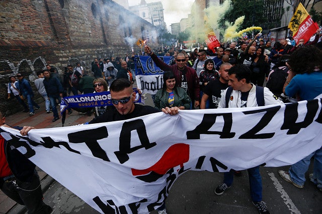 En Bogotá la movilización tiene lugar desde las 9 de la mañana, desde el Planetario Distrital hasta la Plaza de Bolívar. Los manifestantes protestan contra las medidas económicas del Gobierno y conmemorarán el Día Internacional del Trabajo.