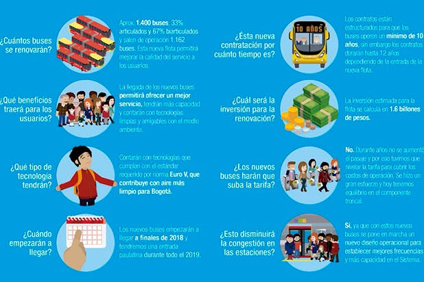 Con la publicación del proyecto de pliegos del proceso licitatorio se garantiza el cumplimiento de los principios que rigen la contratación pública como lo son: el de transparencia, publicidad y selección objetiva. Según el cronograma del proceso licitatorio, el proyecto de pliegos se terminó de publicar el 7 de marzo y se tiene previsto que la adjudicación de los contratos se realice el 5 de julio de 2018. Se estima que la nueva flota ingrese desde diciembre de 2018 y continúe su llegada a lo largo del 2019.
