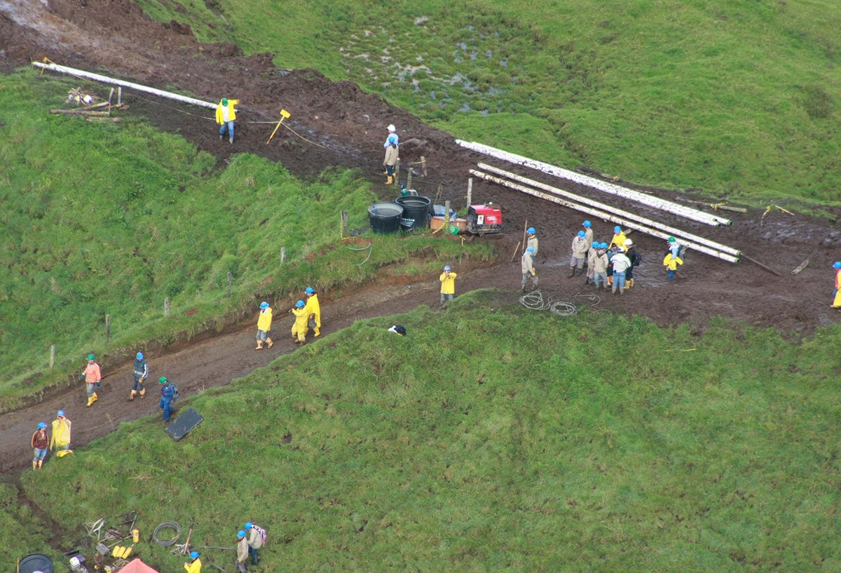 Uno de los tubos presentó rotura total. En él se están ejecutando las actividades para su reparación. Treinta colaboradores de TGI, entre técnicos, ingenieros, operarios, profesionales sociales, entre otros, se desplazaron a la zona. Las complejas condiciones topográficas y climatológicas del lugar únicamente permitieron el acceso de la maquinaria especializada a las 2:00 pm del jueves 21 de junio.