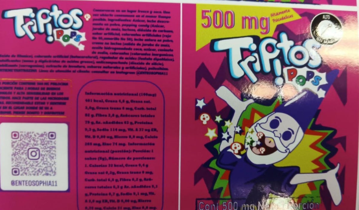 Se trata de "Tripitos Pop", un polvo con componentes activos de cannabis superiores a lo permitido y sustancias ilegales, además de una presentación comercial que busca imitar a productos nacionales.