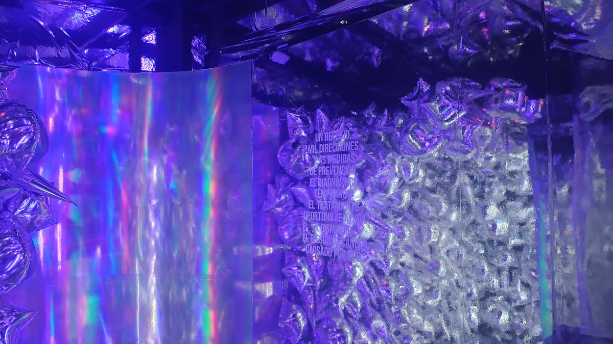 Entre el 2 y el 4 de octubre, un cubo minimalista celeste se tomó la Zona T de Bogotá, un sector concurrido por cuenta de su comercio, sus restaurantes y la vida nocturna. La infraestructura era modesta, pero en su interior planteó un trayecto extravagante cargado de espejos, brillo y frases cuando menos sugestivas acerca del virus del papiloma humano (VPH).