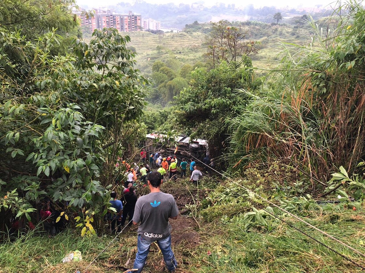 Al hospital San Rafael y la Clínica Antioquia fueron remitidas las 19 personas rescatadas con vida, luego de que un vehículo de la empresa SoloBus rodara por un abismo de 40 metros en el sector La Cumbre de Itagüí, en el sur del área metropolitana del Valle de Aburrá.
