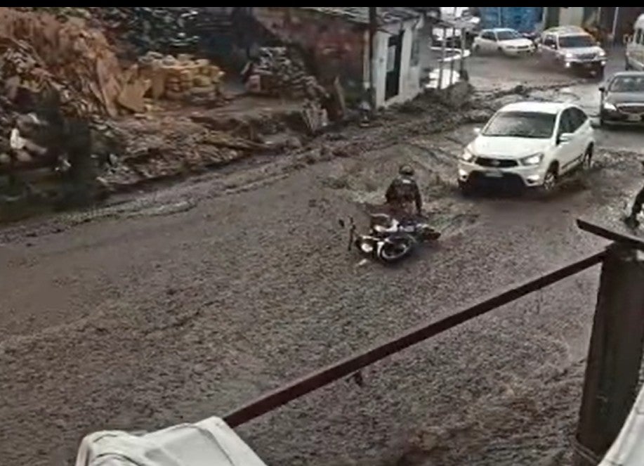 La vía a La Calera también resultó gravemente afectada por el fuerte aguacero. Un árbol cayó y una quebrada se desbordó, lo que generó un largo trancón. Además, algunos motociclistas sufrieron caídas por la fuerza con la que bajaba el agua.