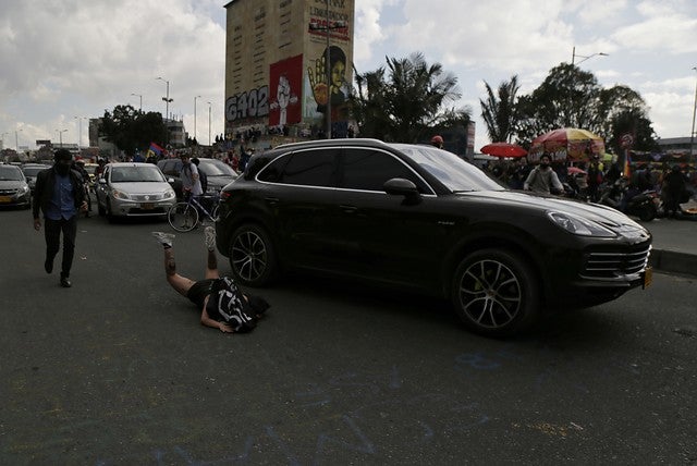 En la tarde de este miércoles 2 de junio, un conductor de una camioneta marca Porsche atropelló a una mujer en medio de las protestas que se desarrollaban en el monumento de Los Héroes, en el norte de Bogotá, y se fue del lugar.