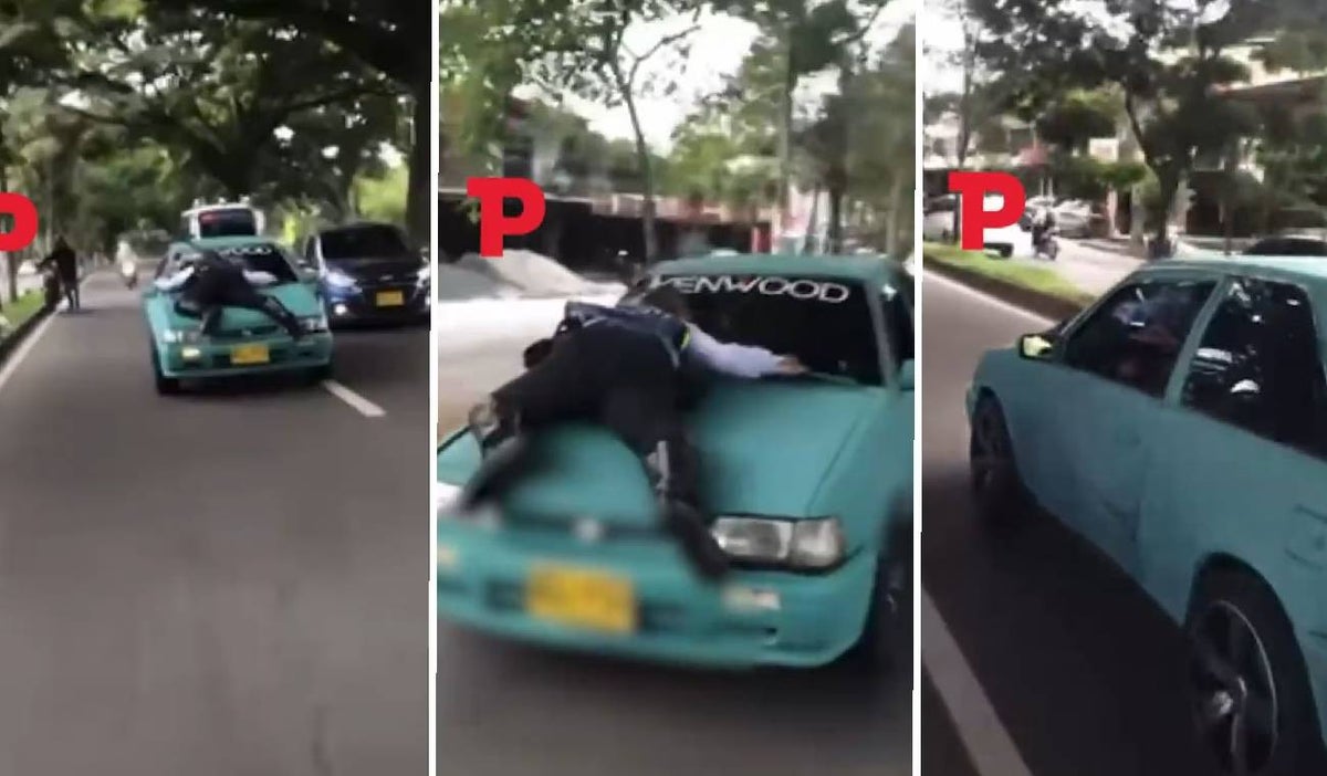 En el video se ve como el agente se aferra al vehículo mientras este se mueve en alta velocidad por las vías del municipio.