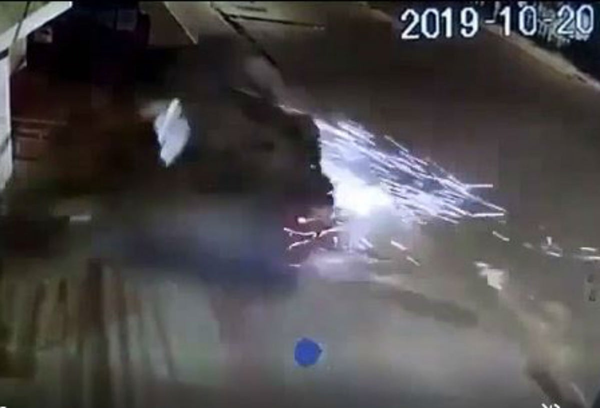 Según se puede ver en los videos de las cámaras de seguridad ubicadas en la calle octava con carrera 19, en el centro de dicho municipio, pasada la medianoche del sábado, el conductor de un vehículo de color rojo pierde el control del mismo al ir a alta velocidad, y choca contra los postes de una obra.
