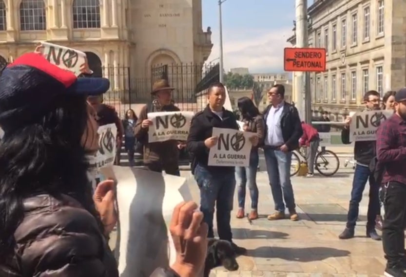 “Le pedimos a Duque que rechace la posibilidad de una guerra, Colombia no puede servir de territorio para una posible intervención (...) no queremos muertos, tenemos que defender la vida", señaló uno de los manifestantes.