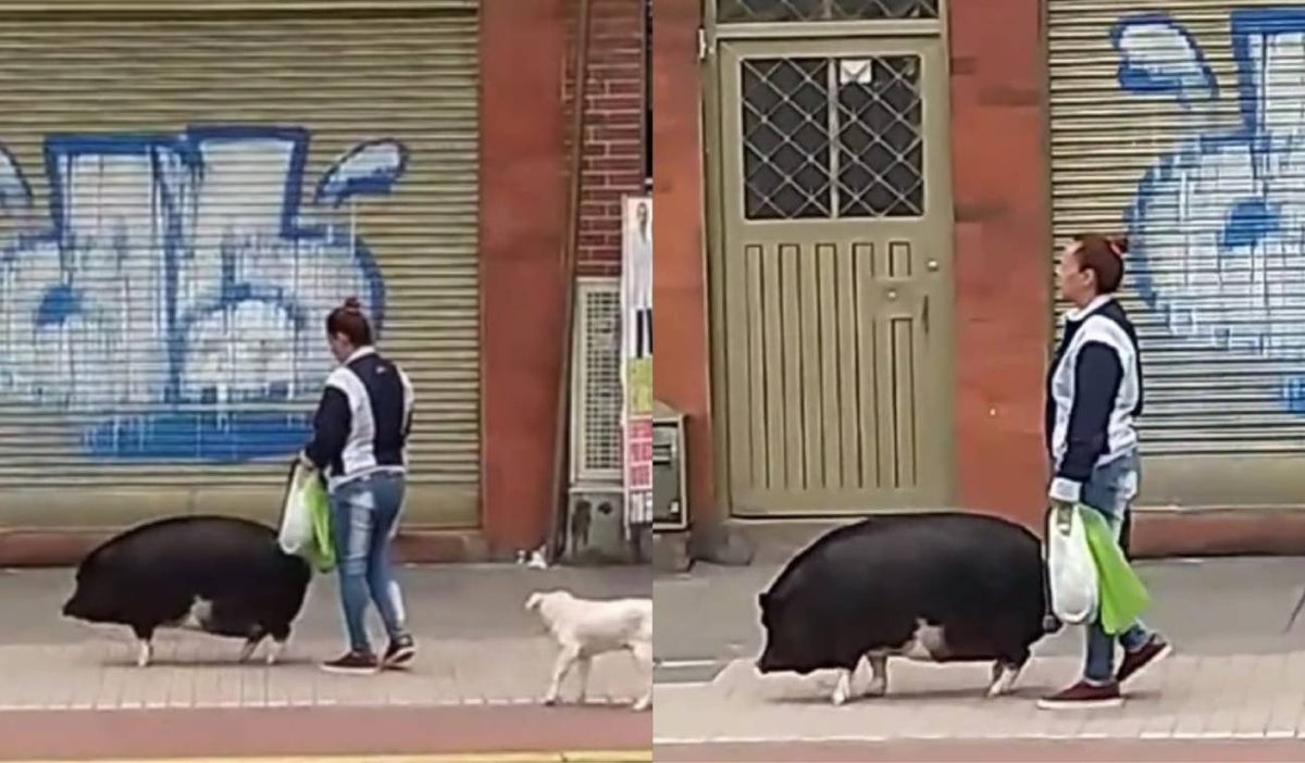 En el clip se puede ver a una mujer caminando con dos mascotas, un cerdo grande y un perro. De acuerdo con lo que afirmaron los usuarios de TikTok, el hecho se presentó en el suroriente de Bogotá.