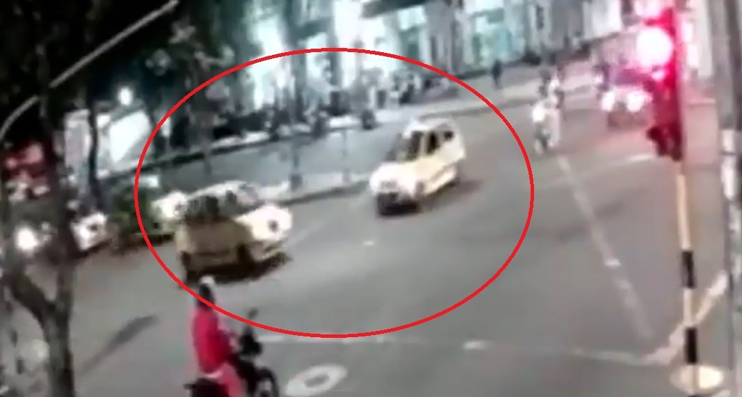 Un video de una cámara de seguridad instalada en la zona conocida como Quebrada Seca con Carrera 33, captó el momento en que uno de los vehículos de servicio de traslado omitió la luz roja del semáforo y cruza rápidamente siendo embestido por otro vehículo amarillo.