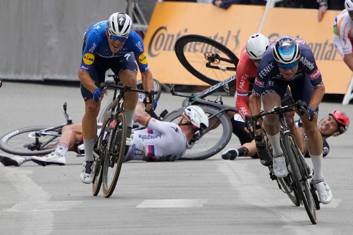 Los equipos de los esprinters tomaron el mando, surgieron nervios, con caída de varios corredores a 4 km de meta. En la recta final Philipsen no dio opción y logró la primera victoria del Alpecin en la historia de la Vuelta.