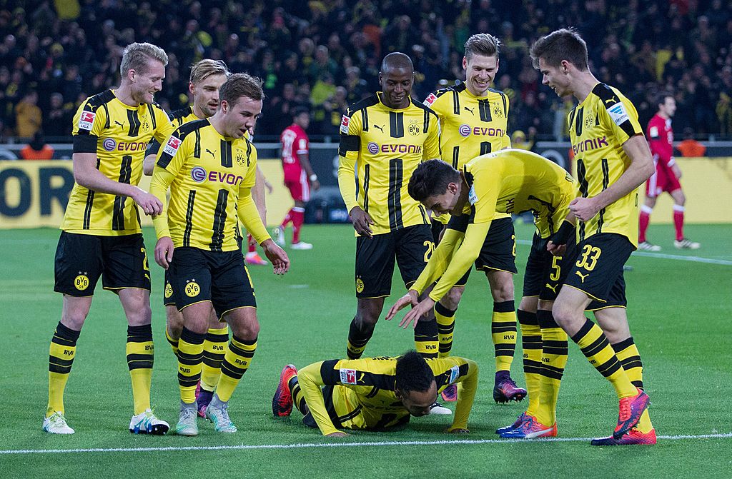 Adelante el Dortmund apostó por dos hombres en punta, el colombiano Adrian Ramos y Aubameyang, asistidos desde la media punta por Mario Götze y André Schürrle.