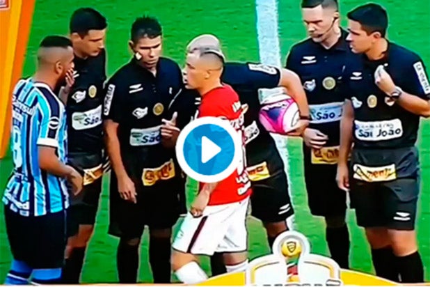 Andrés D'Alessandro, jugador del Internacional de Brasil, se dijo de todo con Maicon, capitán de Gremio, previo al clásico de los dos equipos de Porto Alegre. Sin saber exactamente qué sucedió, los árbitros tuvieron que mediar.