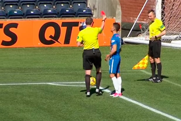 ¡Árbitro le sacó tarjeta roja al juez de línea!