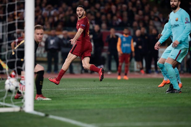 Daniele De Rossi sirvió a Dzeko con un gran pase vertical y el bosnio controló, aguantó la presión de Jordi Alba y empujó el balón entre las mallas con la pierna zurda para desbloquear el marcador y alimentar el sueño de remontada del Roma.