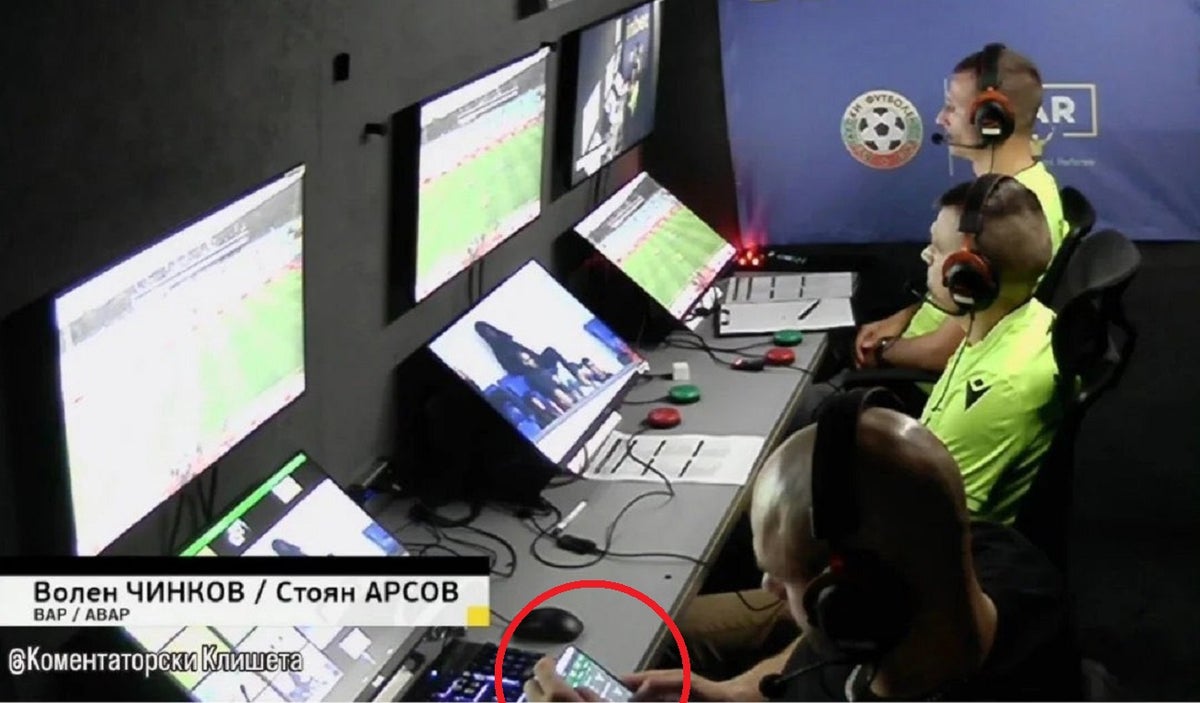 En la cabina del VAR en uno de los compromisos de la Liga de Bulgaria, se capturó con "las manos en la masa" a uno de los integrantes del VAR con su celular en la mano, en pleno partido, en una reconocida plataforma de apuestas.
