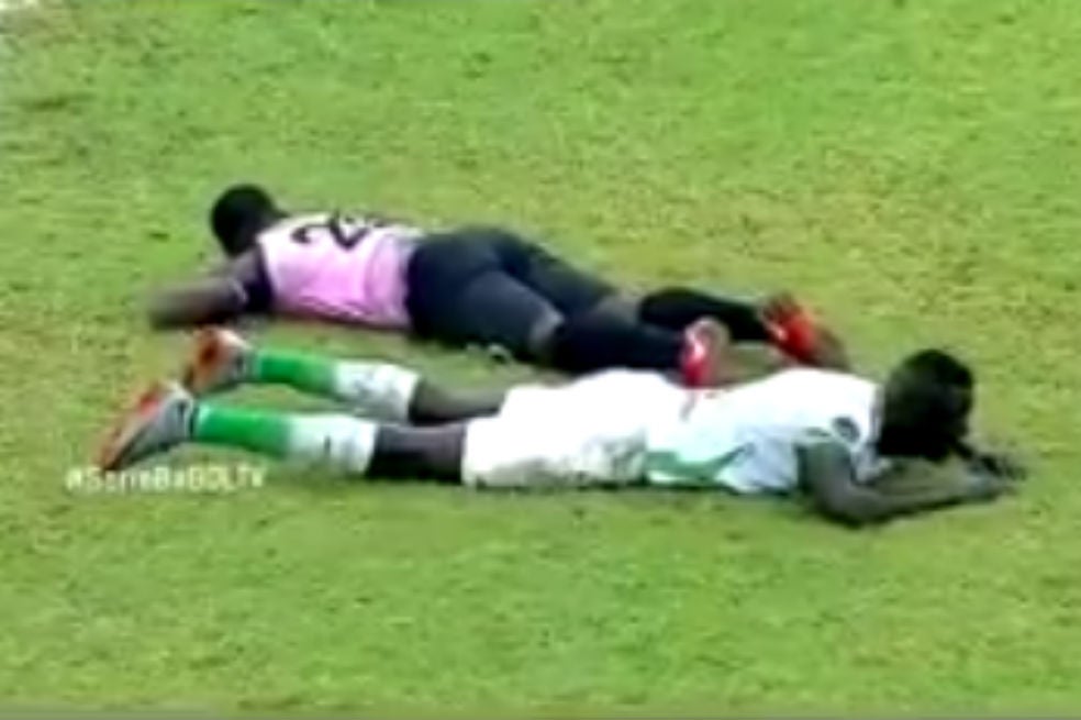 Era el minuto 26 del primer tiempo cuando todos en el campo de juego empezaron a postrarse en la cancha y permanecieron inmóviles por unos minutos.