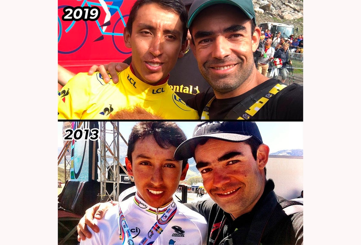 La carrera, que por entonces costaba 9 millones de pesos, se la pagó Pablo Mazuera, su mentor. Conoció a Egan Bernal cuando era un niño de 12 años y le dijo adiós con 18, cuando emigró a Italia para convertirse en profesional prematuro. Pablo Mazuera visitó el Tour de Francia y recibió un caluroso abrazo de su antiguo pupilo. "Y eso que quería ser periodista", contó a la La Agence France-Presse.