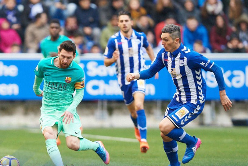 Daniel Torres, en acción ante Messi / Foto de Alavés