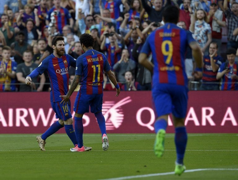 4 - Barcelona: Ter Stegen; Sergi Roberto (Mascherano, min.78), Piqué, Umtiti, Digne (Jordi Alba, min.75); Busquets, Rakitic (André Gomes, min.83), Iniesta; Messi, Suárez y Neymar.