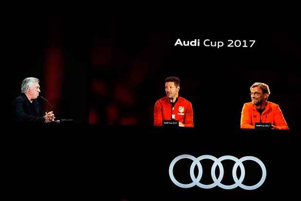 Jürgen Klopp y Diego Simeone, entrenadores del Liverpool y del Atlético de Madrid respectivamente, participaron este viernes en una conferencia de prensa en Múnich a través de hologramas junto a Carlo Ancelotti, para anunciar la participación de sus clubes en un torneo amistoso con el Bayern en agosto.