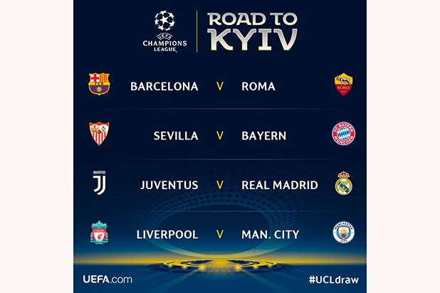 Con Andriy Shevchenko, embajador de la final del 26 de mayo en el Olimpico de Kiev, como 'mano inocente', la otra eliminatoria enfrentará a los equipos ingleses Liverpool y Manchester City.