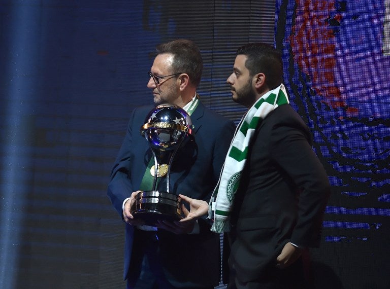 De Nes Filho recibió la copa durante el sorteo de la Copa Libertadores 2017 celebrado en Luque, en el Gran Asunción, de manos del presidente de la Conmebol, Alejandro Domínguez, quien destacó al inicio de la gala que es "una noche de sentimientos encontrados".