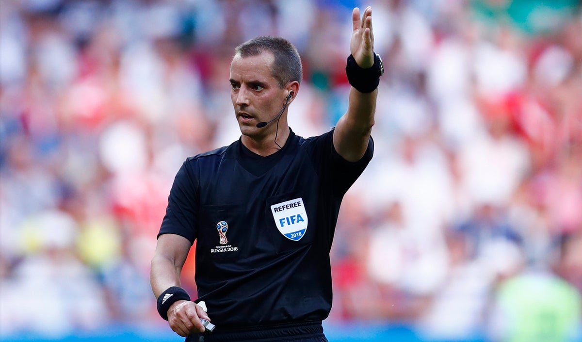 Mark Geiger en juego entre Marruecos y Portugal en Rusia 2018 Crédito: AFP