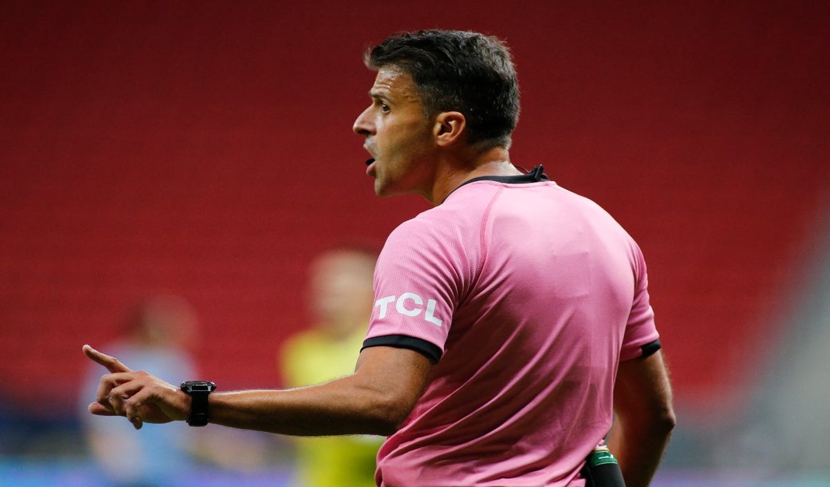 El español Jesús Gil Manzano ha tenido que detener el partido por interferir en dos jugadas.