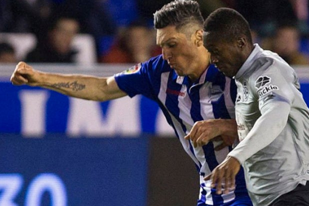 El jugador del Alavés recogió un rechace tras una gran jugada de Santos que controló muy bien con el pecho un envío de Pantic y pegó en el travesaño de la meta gallega.