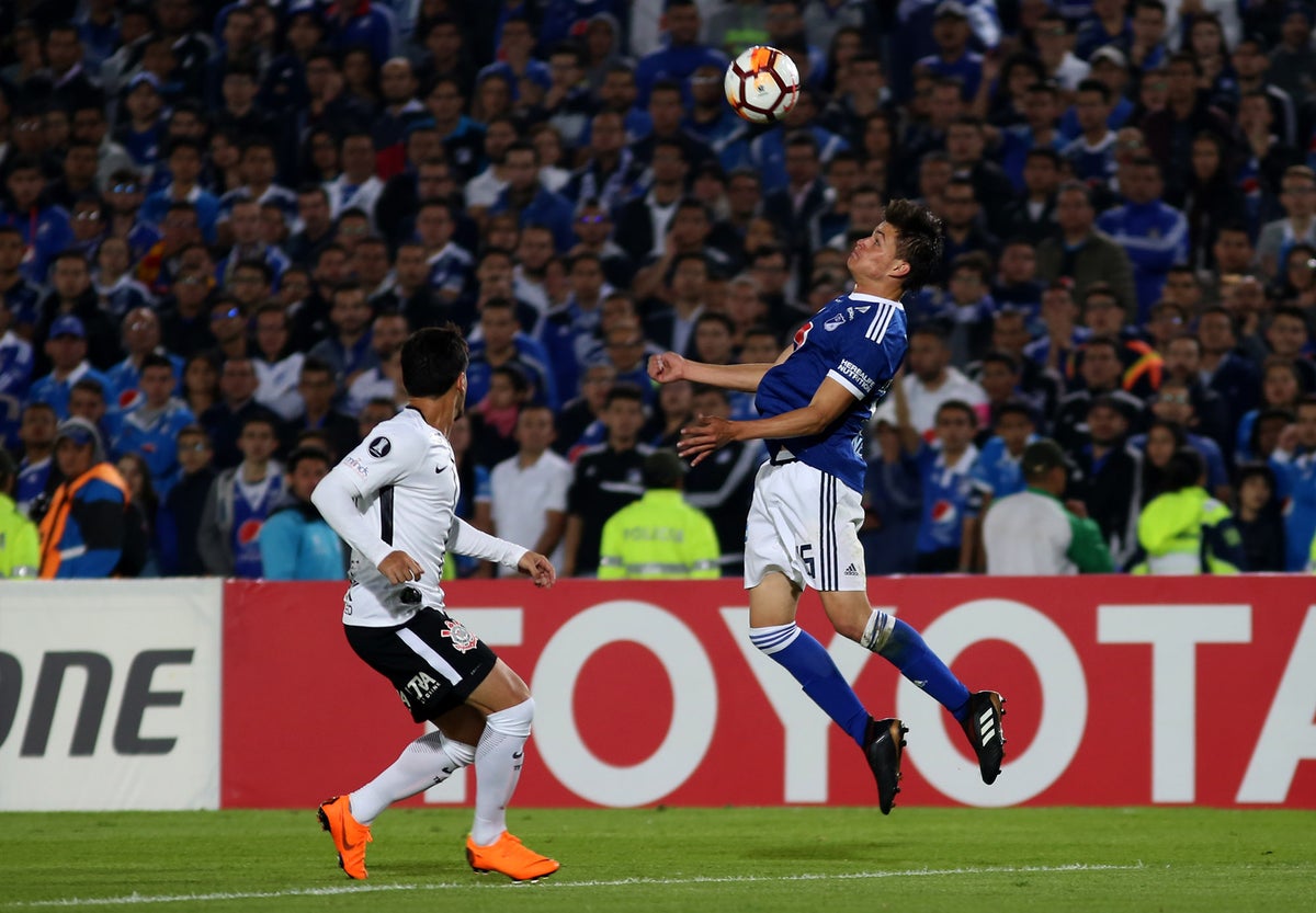 Coritnhians dominó el partido en el inicio del segundo tiempo y tuvo la oportunidad más clara de gol con una remate tras un cobro de esquina del central Henrique, quien hizo temblar el horizontal de la portería norte de El Campín.