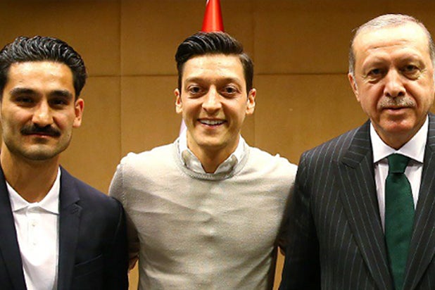 Durante un encuentro el domingo con el presidente turco, los dos jugadores le regalaron camisetas firmadas de sus respectivos equipos (Arsenal para Özil y Mánchester City para Gündogan). Las fotos de la reunión fueron después publicadas en las redes sociales en el marco de la campaña electoral.