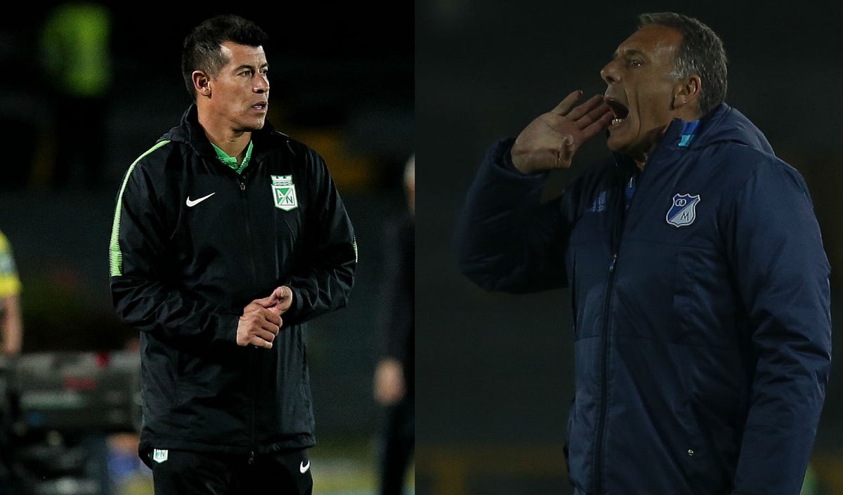 Jorge Almirón, técnico de Atlético Nacional, y Miguel Russo, técnico de Millonarios Crédito: Colprensa