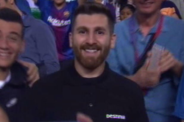 Reza Parastesh en el Camp Nou viendo el Barcelona vs Málaga / Foto del video de la transmisión en TV del juego
