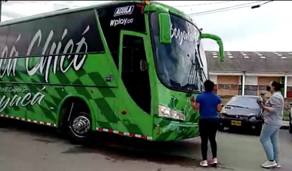 Los jugadores de Boyacá Chicó tuvieron que esperar un momento para poder salir de la ciudad de Tunja con destino a Bogotá. Esto debido a que una empresaria bloqueó el paso del cuadro ‘ajedrezado’.