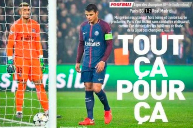 "Todo esto para nada", titula el diario L'Équipe sobre la eliminación del París Saint-Germain en octavos de final de la Liga de Campeones ante el Real Madrid tras haber efectuado "fichajes fuera de lo normal".