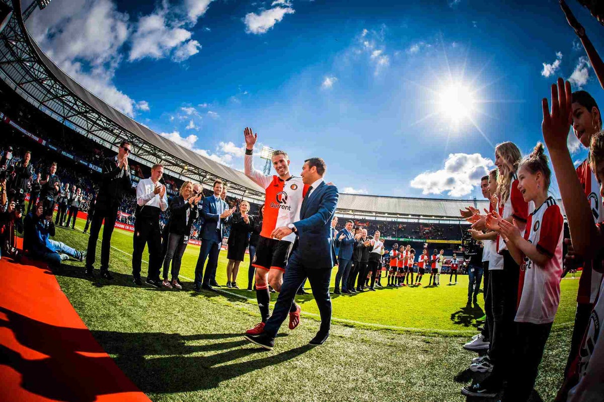 Después del partido, Van Persie dio una vuelta al campo junto a sus dos hijos y lanzó camisetas con su nombre a la grada de De Kuip entre los aplausos del público, que coreó su nombre durante varios minutos.