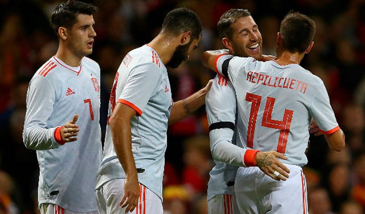 4 - España: De Gea (Kepa, m.46); Gayá, Albiol, Ramos (Bartra, m.46), Azpilicueta (Jonny, m.63); Rodri, Saúl (Koke, m.46), Ceballos; Suso (Rodrigo, m.81), Morata y Alcácer (Aspas, m.73).