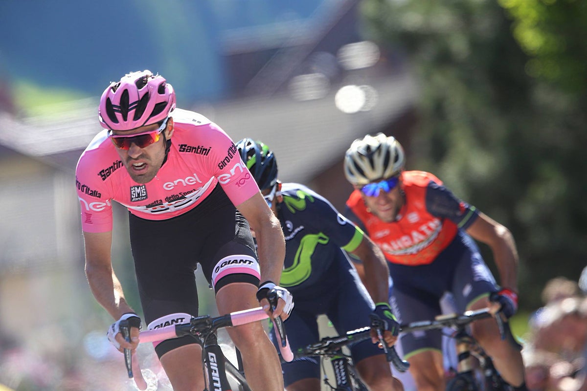 En el descenso de Sappada, a 134 kilómetros para el final, Dumoulin quedó retrasado ante los ataques de Quintana y Nibali, pero también los de Pinot e Ilnur Zakarin.