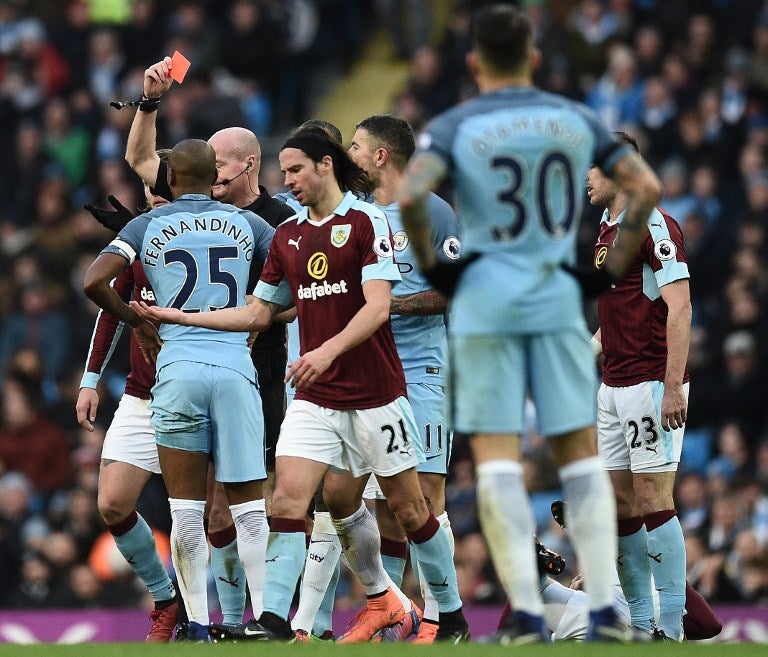 El jugador, de 31 años, recibió una roja directa por una entrada con los dos pies por delante al islandés Johann Berg Gudmundsson en el tramo final de la primera parte de un partido que acabó con la victoria del City por 2-1.