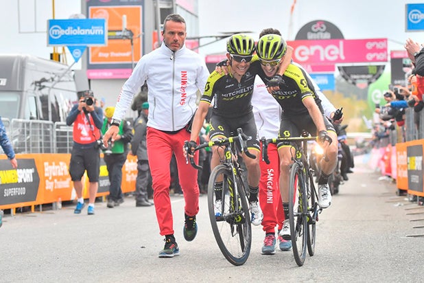 El colombiano Esteban Chaves, ganador de etapa en el Etna, y su compañero británico Simon Yates, nuevo 'maglia' rosa, dieron este jueves al Mitchelton Scott una tarde de gloria en la cima del volcán, donde los favoritos libraron la primera batalla con final en alto del Giro de Italia.