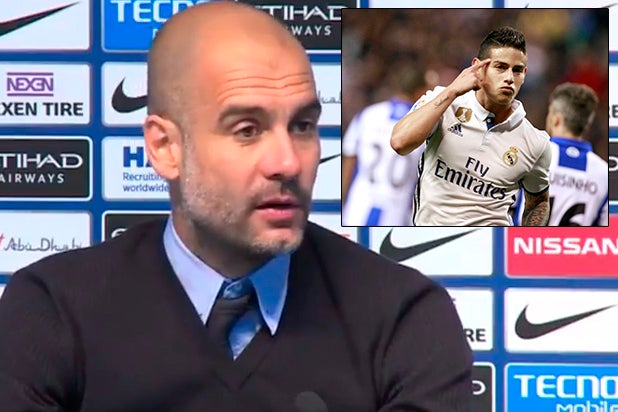 El técnico del Manchester City habla en medio de la posible salida del colombiano del Real Madrid.