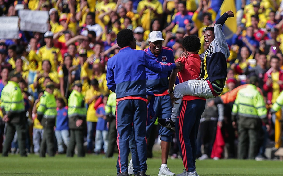 Después de que el bus, cerrado y polarizado, de la selección Colombia cruzara la ciudad desde el aeropuerto de Catam hasta el estadio El Campín, varios hinchas del equipo 'tricolor', ávidos por tener algún tipo de contacto con los jugadores que llegaron hasta octavos de final del Mundial Rusia 2018, se las ingeniaron para pasar los controles de seguridad y saltar a la cancha.