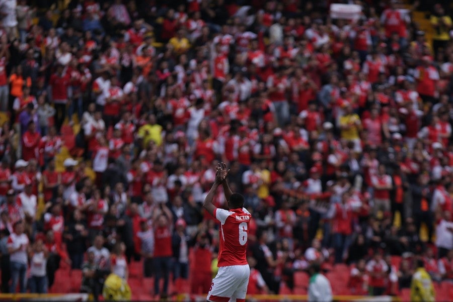 Afición de Independiente Santa Fe en la Liga Águila. Crédito: Colprensa