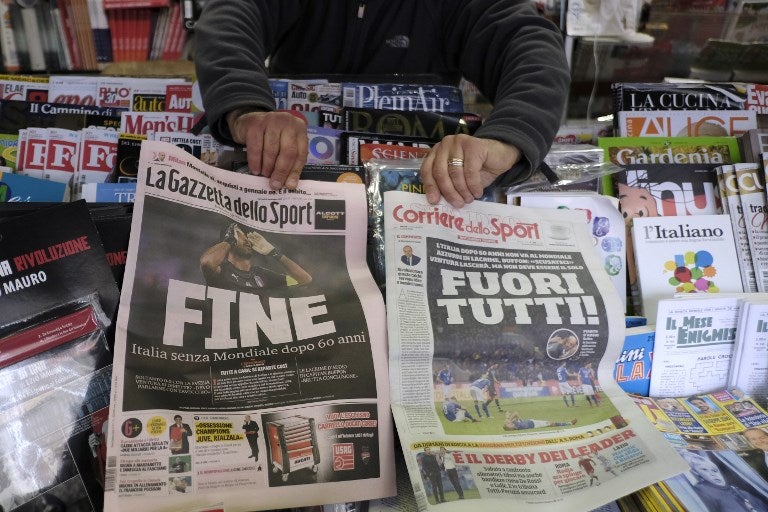 La eliminación sufrida contra Suecia en la repesca, que vio a los italianos perder 0-1 la ida y no pasar del 0-0 en la vuelta de Milán, hundió a todo el país transalpino en la decepción y la indignación por un fracaso que afecta a todos.
