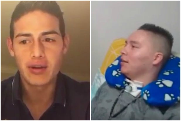 El futbolista colombiano James Rodríguez envió un emotivo saludo y buenos augurios en Navidad y Año Nuevo al patrullero de la Policía James Rodríguez, quien quedó cuadripléjico luego de un accidente que sufrió jugando un partido de fútbol.
