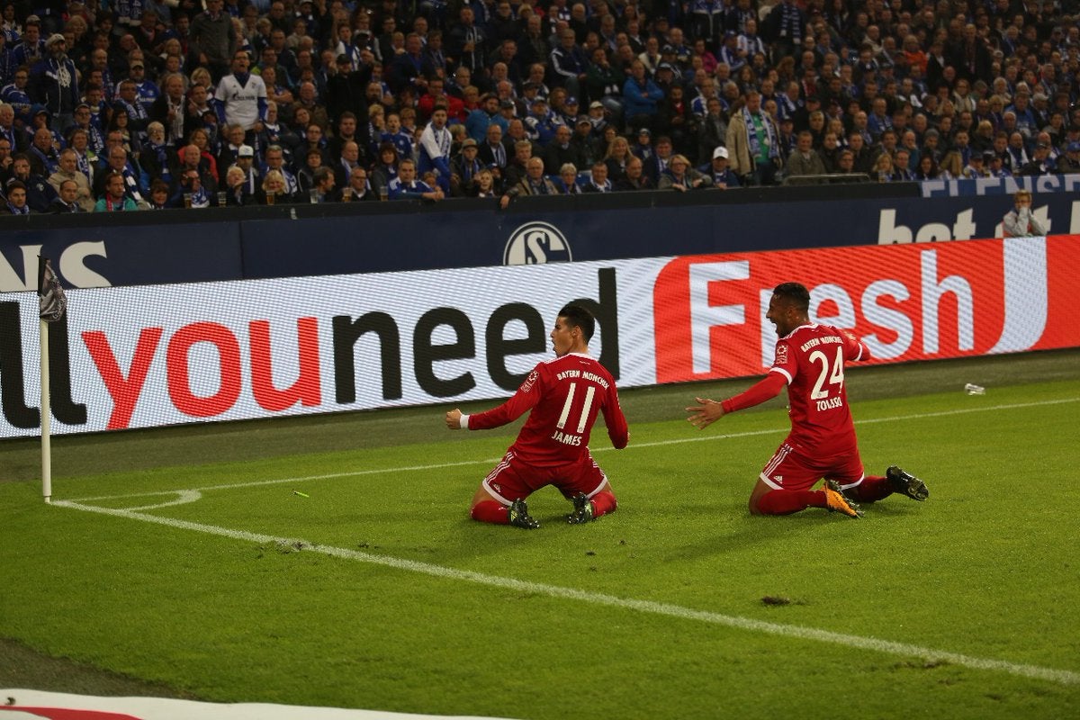 El colombiano James Rodríguez, en su primer partido como titular en el Bayern en la Bundesliga, fue clave en el claro triunfo a domicilio de su equipo sobre el Schalke 04 (0-3) al anotar el segundo tanto, su primero con la camiseta bávara, y participar en los otros dos.