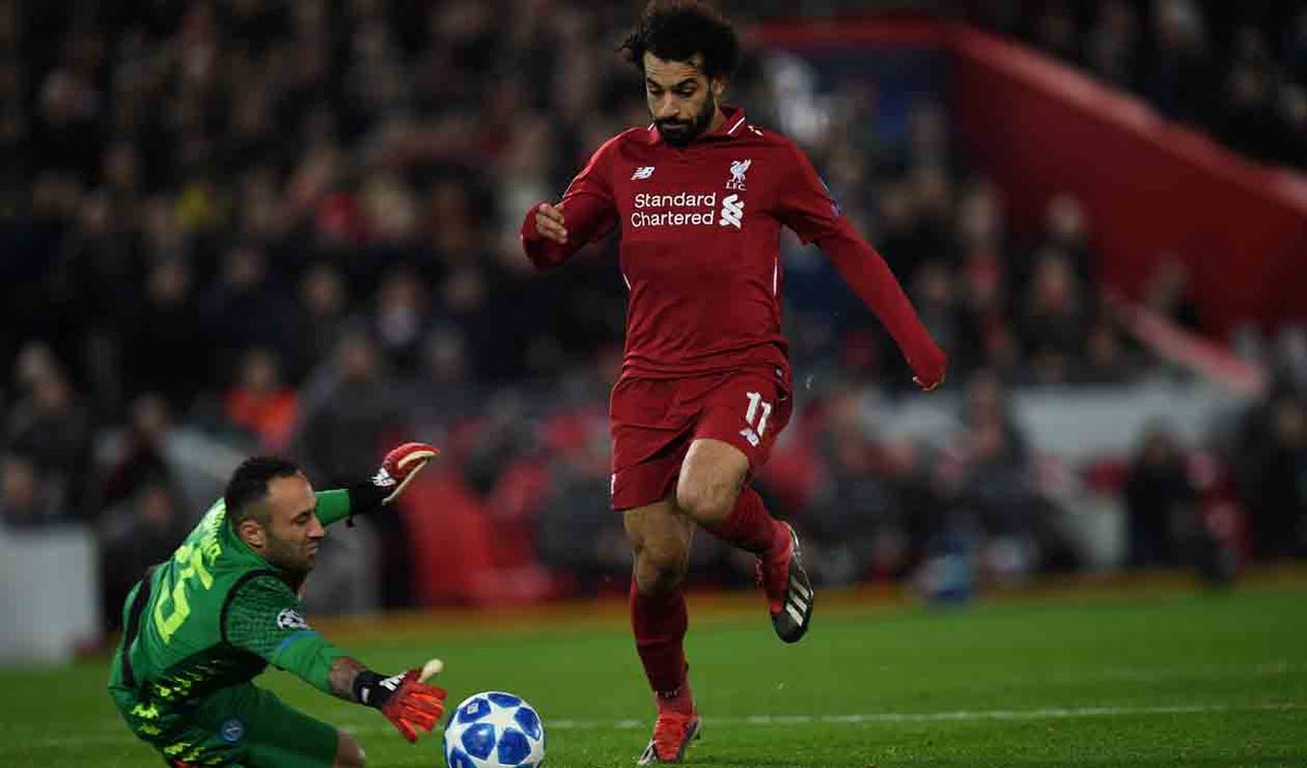 David Ospina y Mohamed Salah en el juego entre Liverpool y Napoli de la Champions League 2018-2019. Crédito: AFP